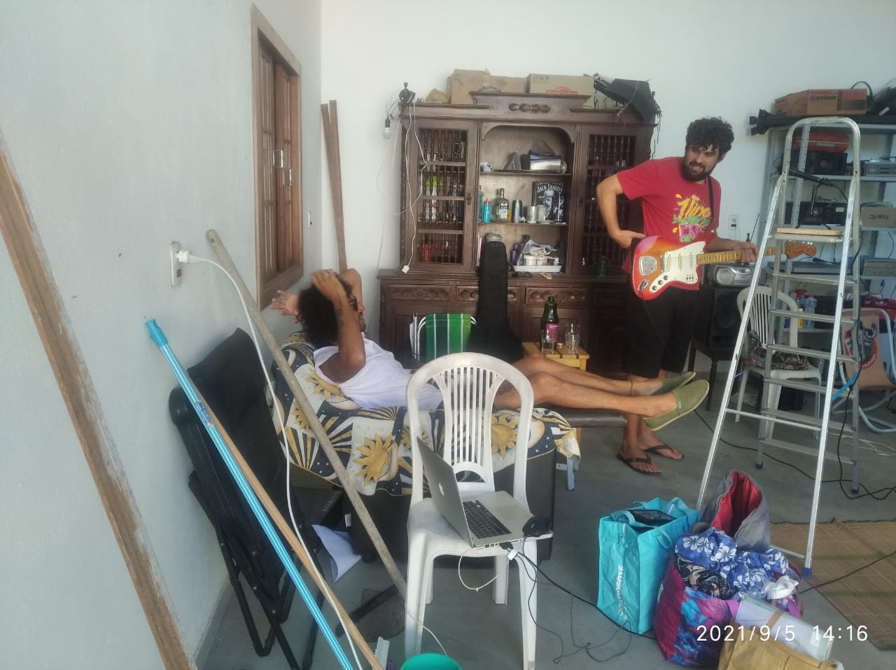 Pra te poupar de mais uma entrevista, vou colocar aqui a forma de conteúdo mais valorizada nesses tempos modernos: A opinião pessoal e unilateral daquilo que eu entendi e senti conversando com Rodrigo Calhau, que toca baixo e canta as palavras, e Lucas Bonini, que toca aquela que não poderia faltar na surf music, a guitarra. Eles também contam com Gabriel Queiroz na bateria, mas ele faltou na chamada e tudo que sei sobre ele foi contado pelos outros.